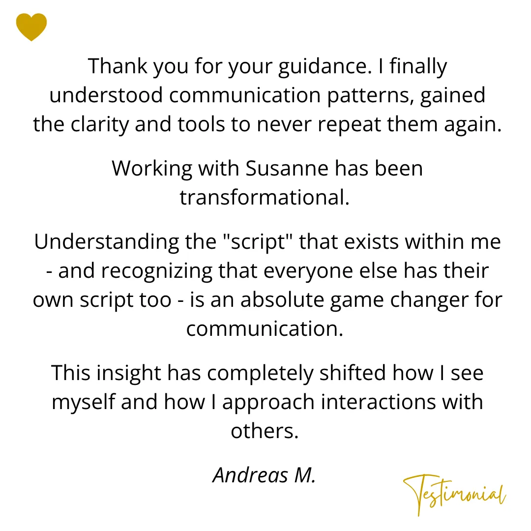 Together we'll untangle the inner conflict: where are you now and what is missing. We take a look at your story and I'll explain about the Script that's been holding you back.