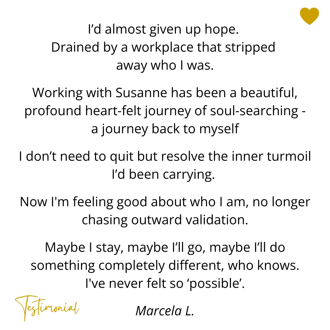 This is a great option for professionals seeking guidance without having to make big scary decisions or worrying about the consequences but want to find a solution to step off autopilot.